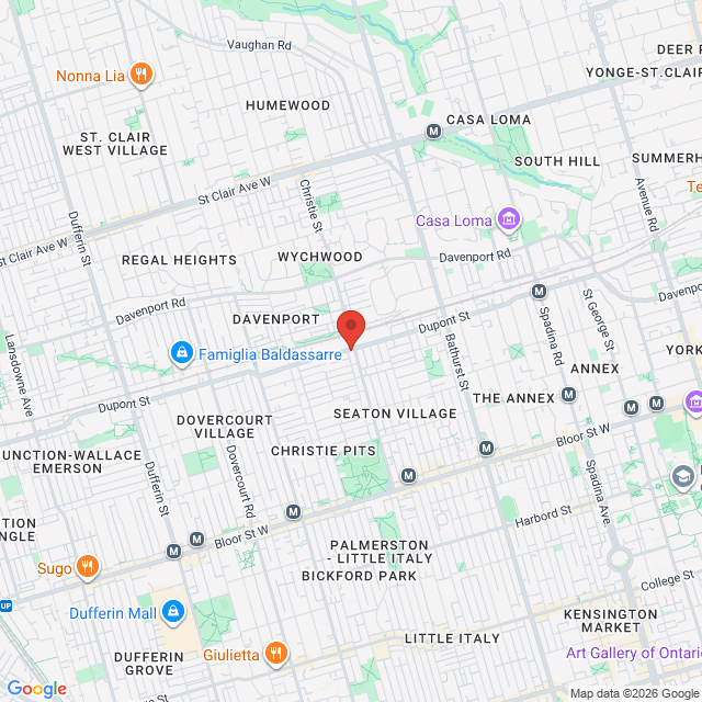 The Dupont #26 bus (runs between Dupont and Jane subway stations) bus, and the Christie #126 bus (runs between Christie and St. Clair subway stations) both stop right at our corner. It's about a 12-15 minute walk to Dupont & Christie from Christie subway station (and about 17-20 minute walk from Dupont subway station).